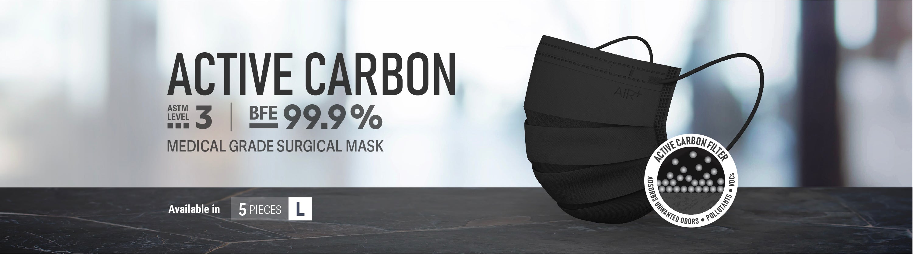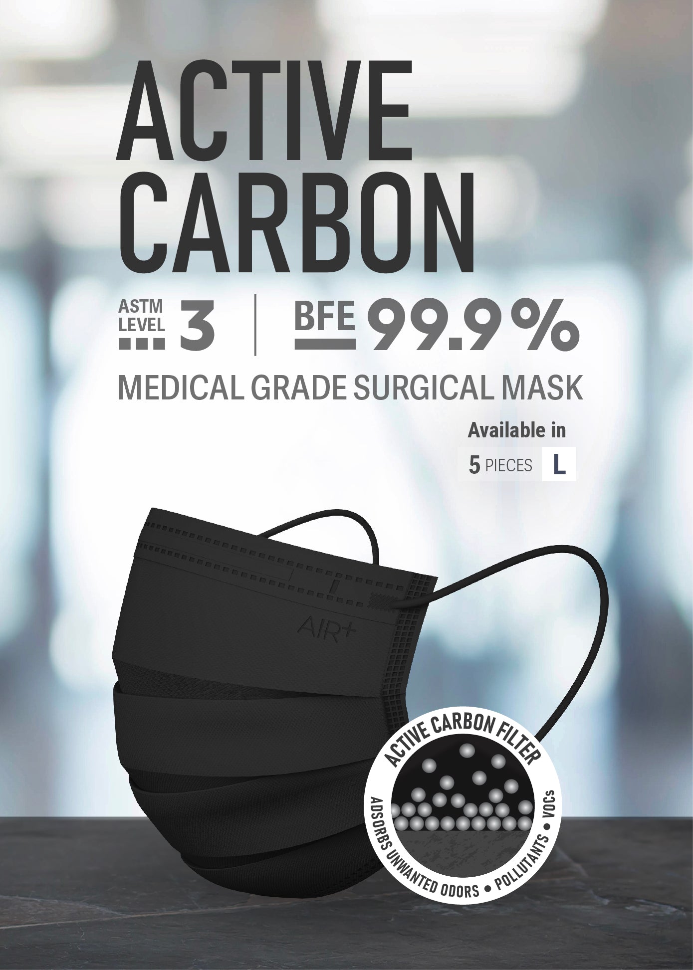 Made in Singapore and tested to ASTM Level 3 standard, the AIR⁺ Surgical Mask with Active Carbon is a disposable face mask that adsorbs unwanted odors, pollutants and volatile organic compounds and delivers medical grade protection for adults.