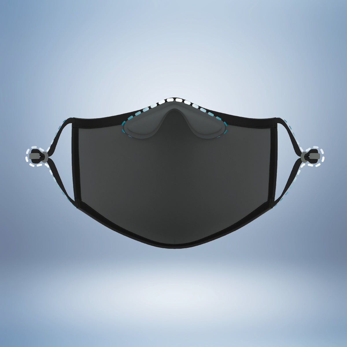 Advanced multi-layered reusable face mask with industrial-grade media that effectively filters more than 95% of aerosolised particles.