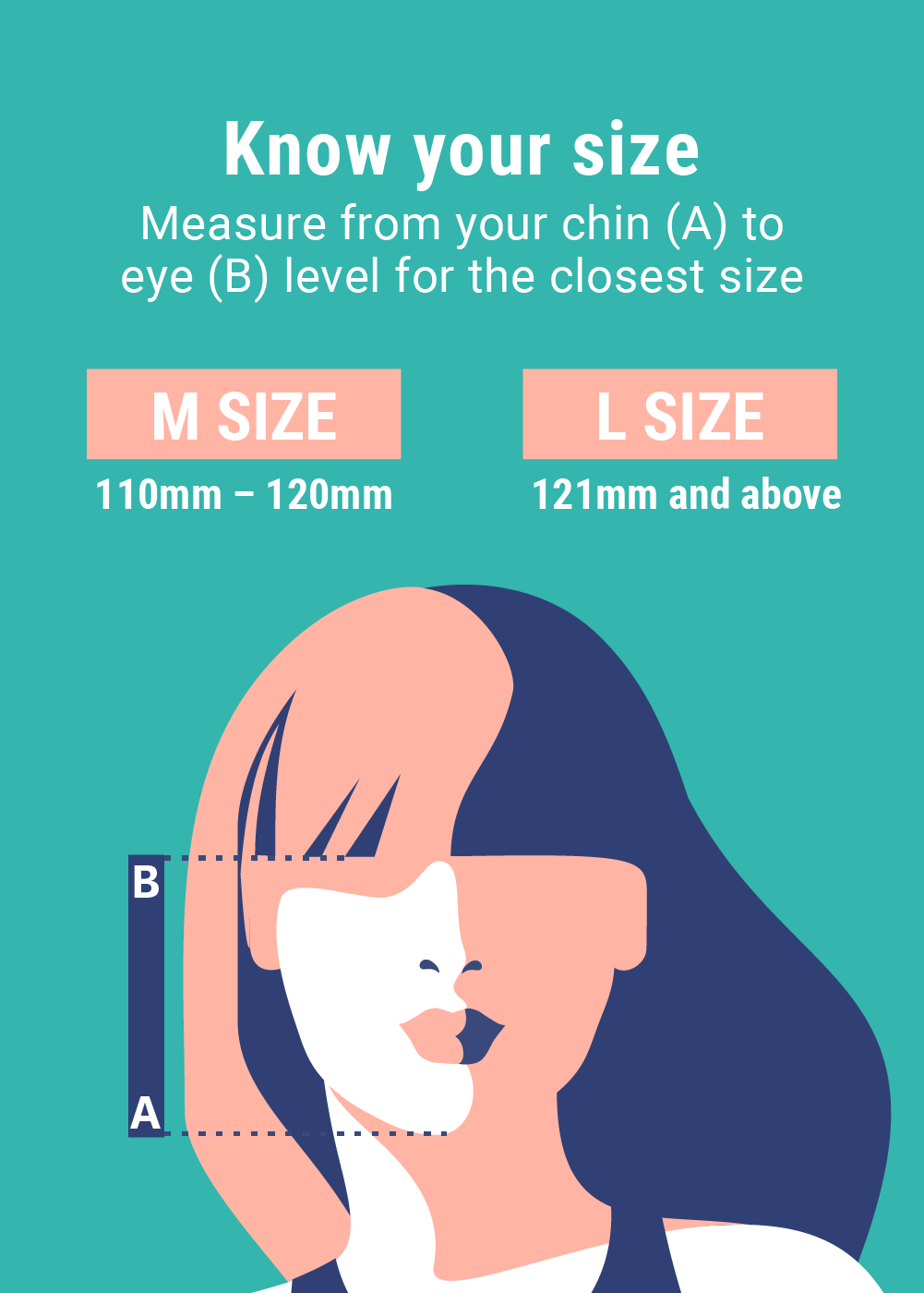 | Size Guide (Measure from your chin to eye level for the closest size) |